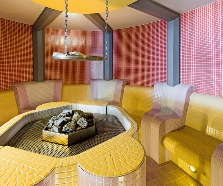 Parní lázeň se od sauny odlišuje až 100% vlhkostí teplého vzduchu s teplotou 40 – 50 °C. Tělo se tak vlivem příjemné teploty prohřívá.